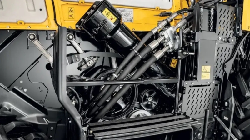 Maximálne využitie pracovného času podporuje jednoduchá prevodovka bez reťazí s priamym pohonom a ľahkým prístupom ku všetkým komponentom, čo minimalizuje prestoje pri údržbe. Všetky parametre je možné nastavovať a monitorovať priamo z kabíny, vrátane vzdialeného vyprázdnenia zásobníka a automatického odblokovania vnútorných častí pri prípadnom uviaznutí materiálu. Takáto koncepcia zaručuje vysokú dostupnosť a spoľahlivosť počas kritického zberového obdobia.